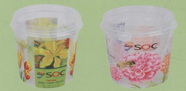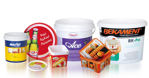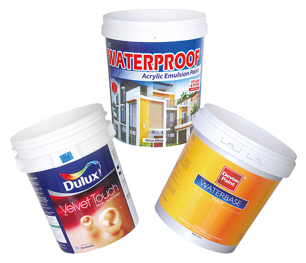 贴有超大面积模内标签的涂料桶